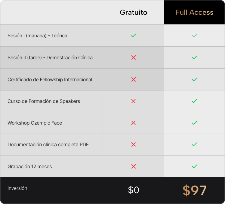 Tres días de Inmersión Máster para elevar tu criterio clínico, reducir errores y lograr resultados más previsibles en Armonización Facial. Contenido práctico, aplicable desde el primer día. Inscripción gratuita.