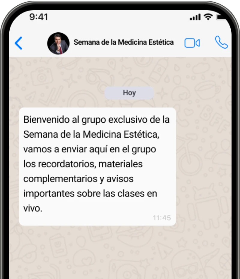Entra ahora al Grupo Oficial de WhatsApp para mantenerte al tanto de todo lo que está ocurriendo en el evento y recibir todos los materiales de la Semana de la Medicina Estética.